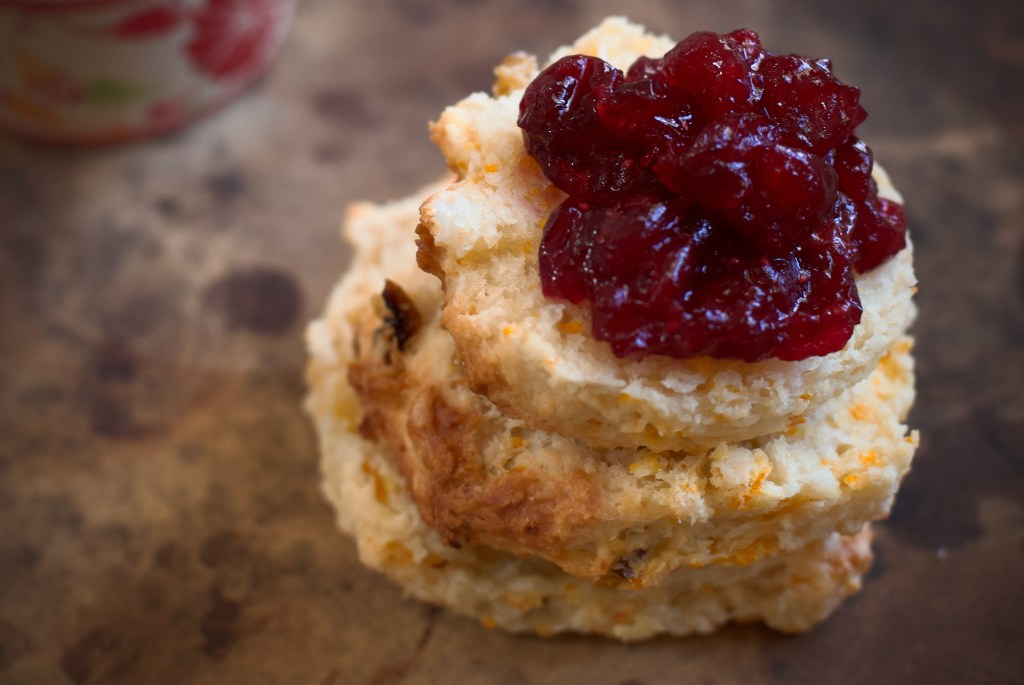 On Tuesday, I will make cranberry jam. The cranberry is sour and high in pectin, making it a best berry for cooking. Cranberry jam is great on bread and biscuits, but its tartness gives it much versatility, not only filling cakes and tarts, but also dressing salads and sandwiches and flavoring meat stews. To make cranberry jam, only sugar and water are required, but adding orange juice and zest heartens that holiday feel. The weight ratio of sugar to cranberry can vary between 50% for a tart jam to 100% for a sweet one. Place fresh or frozen cranberries and sugar in a nonreactive pan, stir in the zest and juice of a couple of oranges, and add enough water to submerge the fruits. Simmer over low heat for about an hour until jammy consistency and avoid stirring to keep the fruits intact.