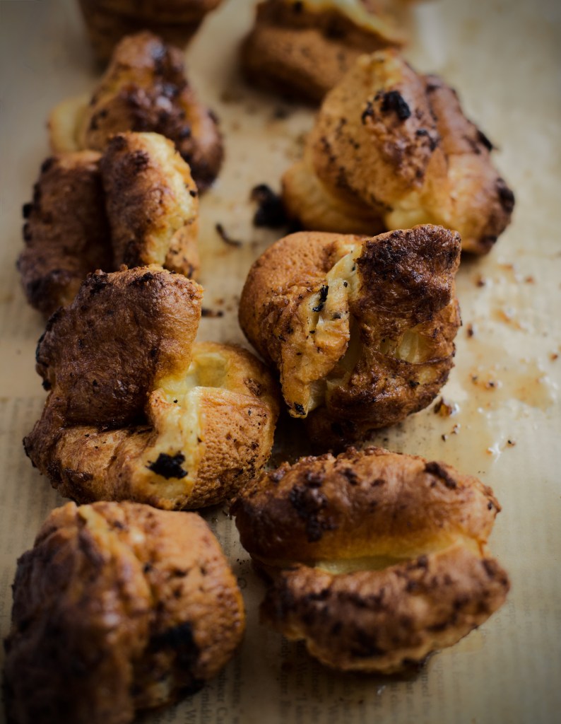 Additionally, the plethora of books and internet resources enables sharing of experiences gained over many years from many bakers. I am, in many ways, enjoying the fruits of their labors. While toying with the pâte-à-choux, the popovers caught my attention. Whereas the choux are hollow and bland “cabbages” in need of a filler, popovers are mile-high puffs that can hold their own. Popovers are crisp shelled but tendered in flesh, and this one from Kenji López-Alt won me over because it’s flavored with tallow. I always have frozen beef dripping laying about, waiting for the next big thing. Beside the winning flavor profile, his experiment detailed every possible alternatives for your popovers to rise taller. Heat and steam make the magic happen for this sort of batter without a leavening agent. The popover batter is even thinner than a pancake batter; getting it warmed to room temperature, then the baking pan and the oven super hot will quickly evaporate liquid into steam, rising the bread three times over.