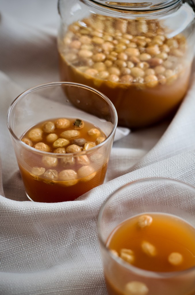Dark rye bread is the bread of choice. I made mine following this recipe, halving the quantities for one 800-gr loaf. Depending on the bread, the amount of water may vary. This recipe for kvas is adapted from Kachka by Bonnie Morales.