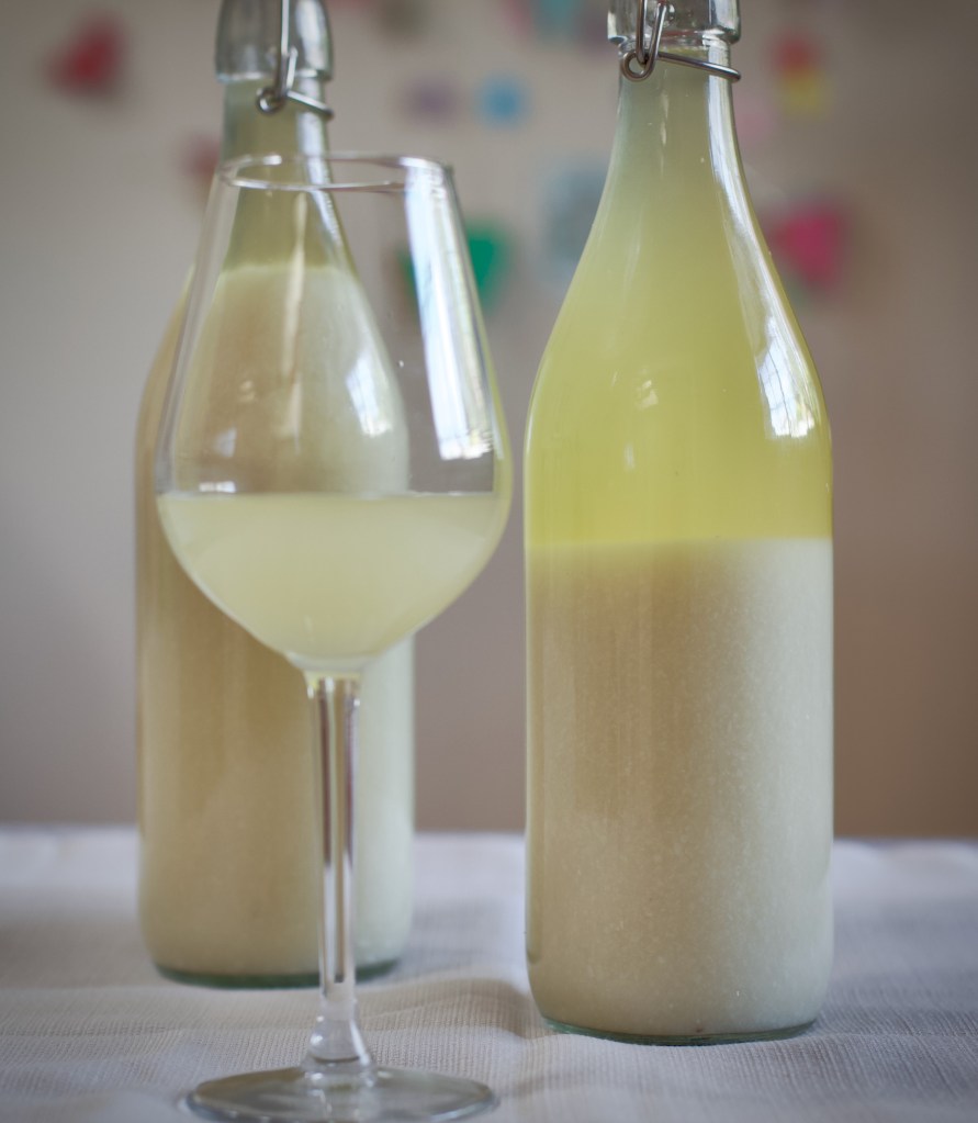 Once fermentation completes, it can be racked off into smaller vessels. Unlike fruit wines, it is fairly difficult to rid the rice slurry completely in order to have a clear sake. Refrigeration to settle the lees and multiple racking may be required. I ended up using a Greek yogurt strainer to further clarify after the first rack. Even after that, pour ever so gently so as to not disturb again the lees settling at the bottom.