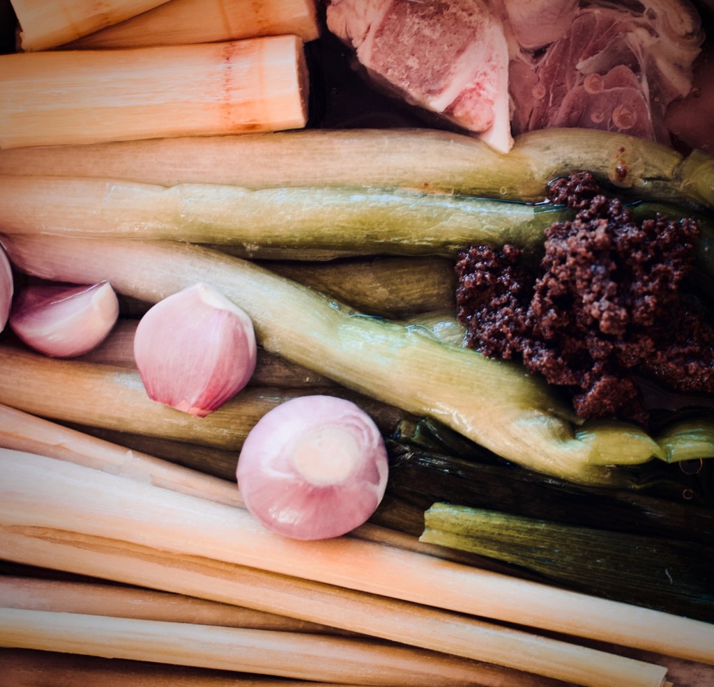 A broth ranges from the most simple, such as tea, to the most complex, such as consommé, a broth strained of sediment so that it appears like tea, yet comprises all the essence of a rich and flavorful meat broth. There are multiple ways to classify a broth, and I categorize it with respect to time. The richest, deepest broth is made with bovines, such as cows and buffalos, over a long period of time. Tonkotsu ramen broth is particular in that it is made with pig bones over many hours, so that everything breaks down into a supremely gelatinous and rich texture.