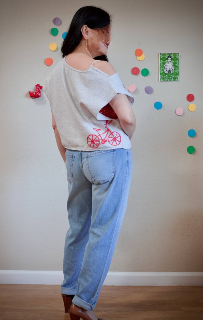 - Throw the sweatshirt in the wash so that the newly cut edges will curl. Throw over your head; bra not required.*